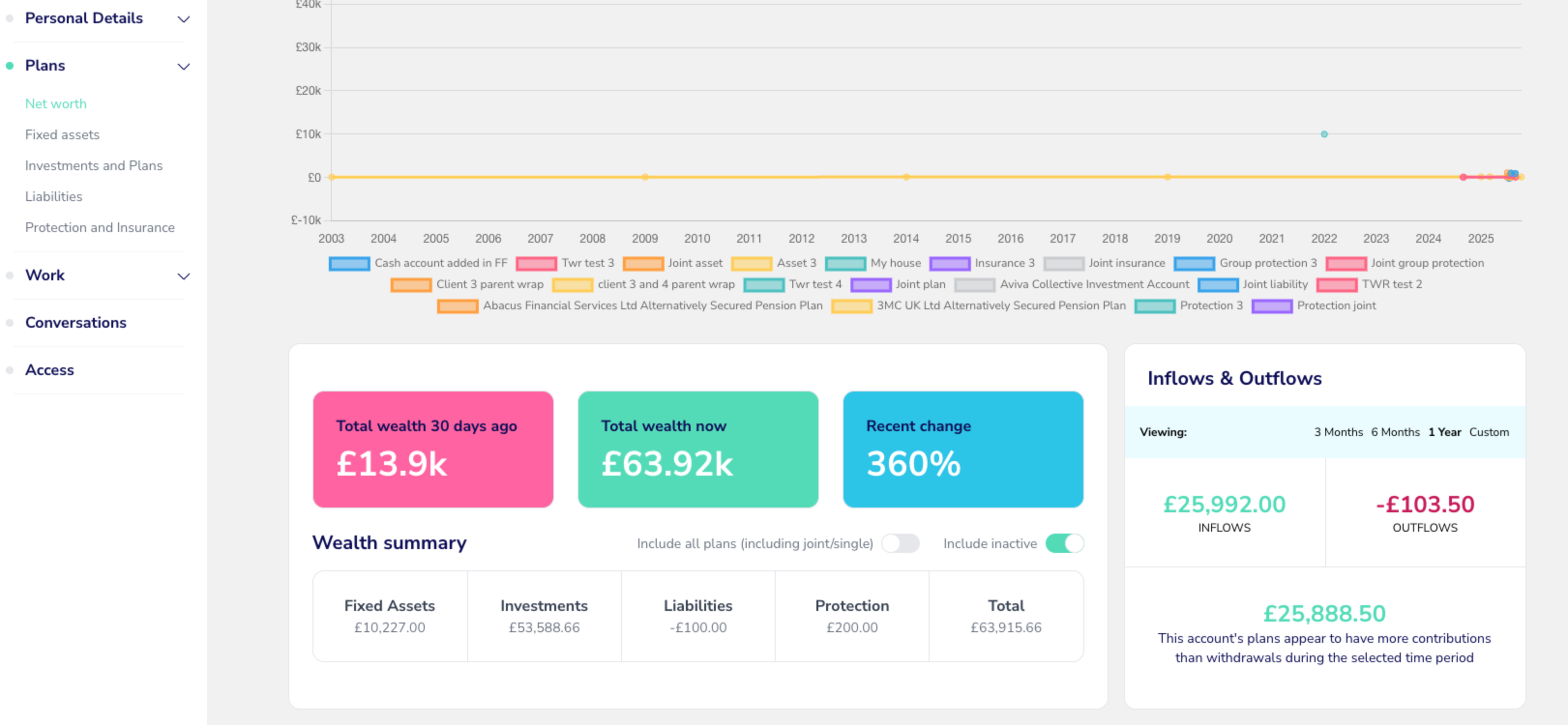 There’s a new widget in your plans area that shows you a summary of the transactional data stored in Plannr for your clients plans. Where you have transactional data feeds set up or you’ve been manually adding contributions and withdrawals to the Transactions area of Plannr, these are now displayed based on the date range selected and for the plan or plans you’re viewing.