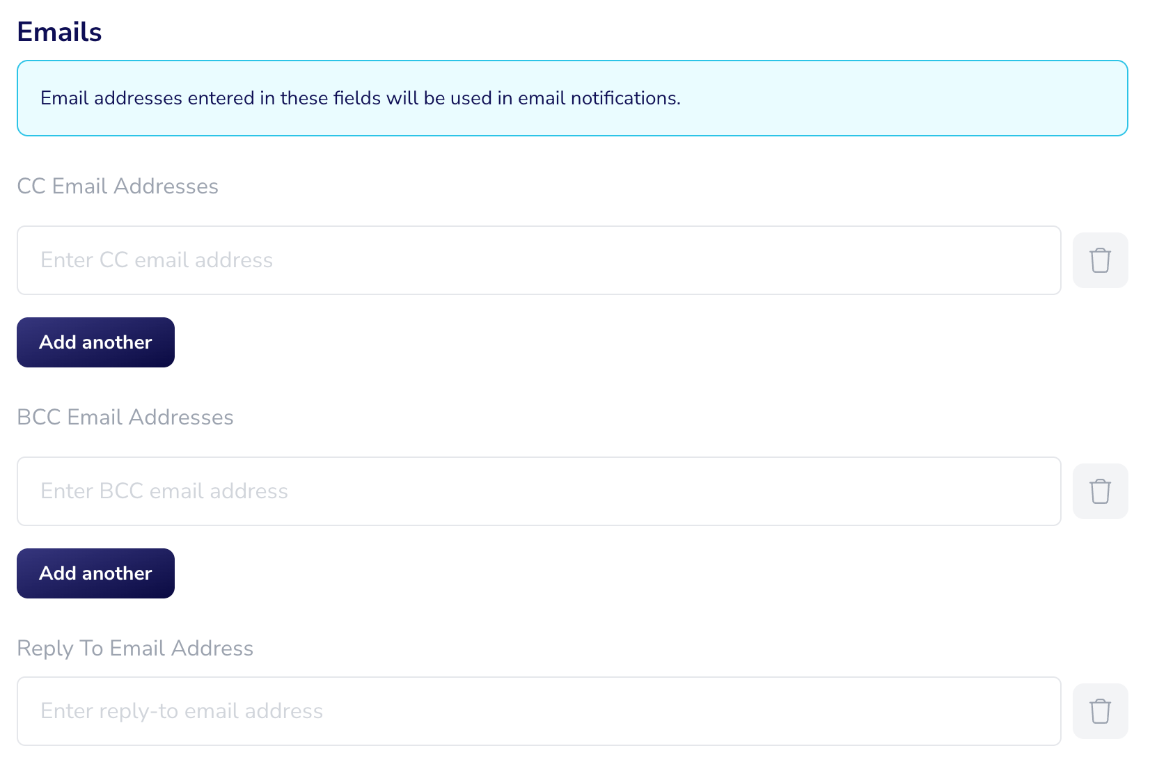 First thing we’ve done is to add in the option to allocate multiple email accounts to be cc’d or bcc’d into the emails that your site generates, e.g. your factfind requests, form requests, client portal notifications etc - this might be useful for tracking those comms and following up with clients if they haven’t actioned your requests. You could add a generic admin mailbox or multiple individuals within your firm, however best fits the way you would track yours and your clients workloads.