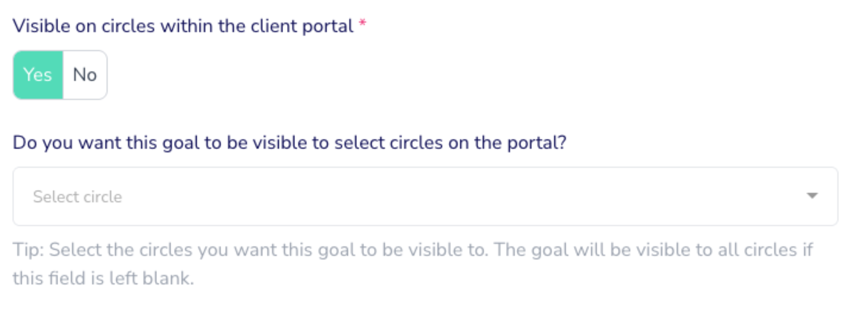 As part of our ongoing work to open up the client portal functionality for Circles, we have now released the Goals area to make circle participant’s goals visible to the Circle, in the client portal, when toggled on. As a default these will all be toggled off, for you to switch on as required.