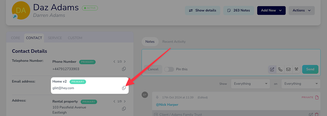 In Plannr, against various client fields you’ll see a new icon to copy. When clicked, this icon will automagically copy the content to your clipboard, ready to pop into something else. Handy!
