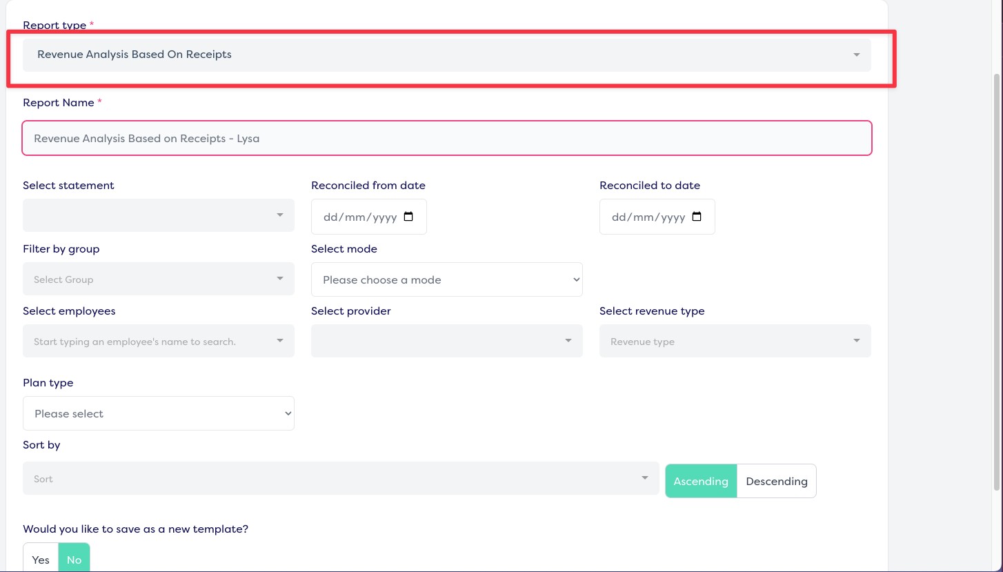 We've rolled out our new Revenue Analysis Based on Receipts report, attached is a screen shot of the filters and it outputs the following columns: